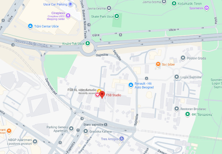 raspolažemo sopstvenim, velikim (besplatnim) parkingom ispred samog filmskog studija, za FSB klijente .